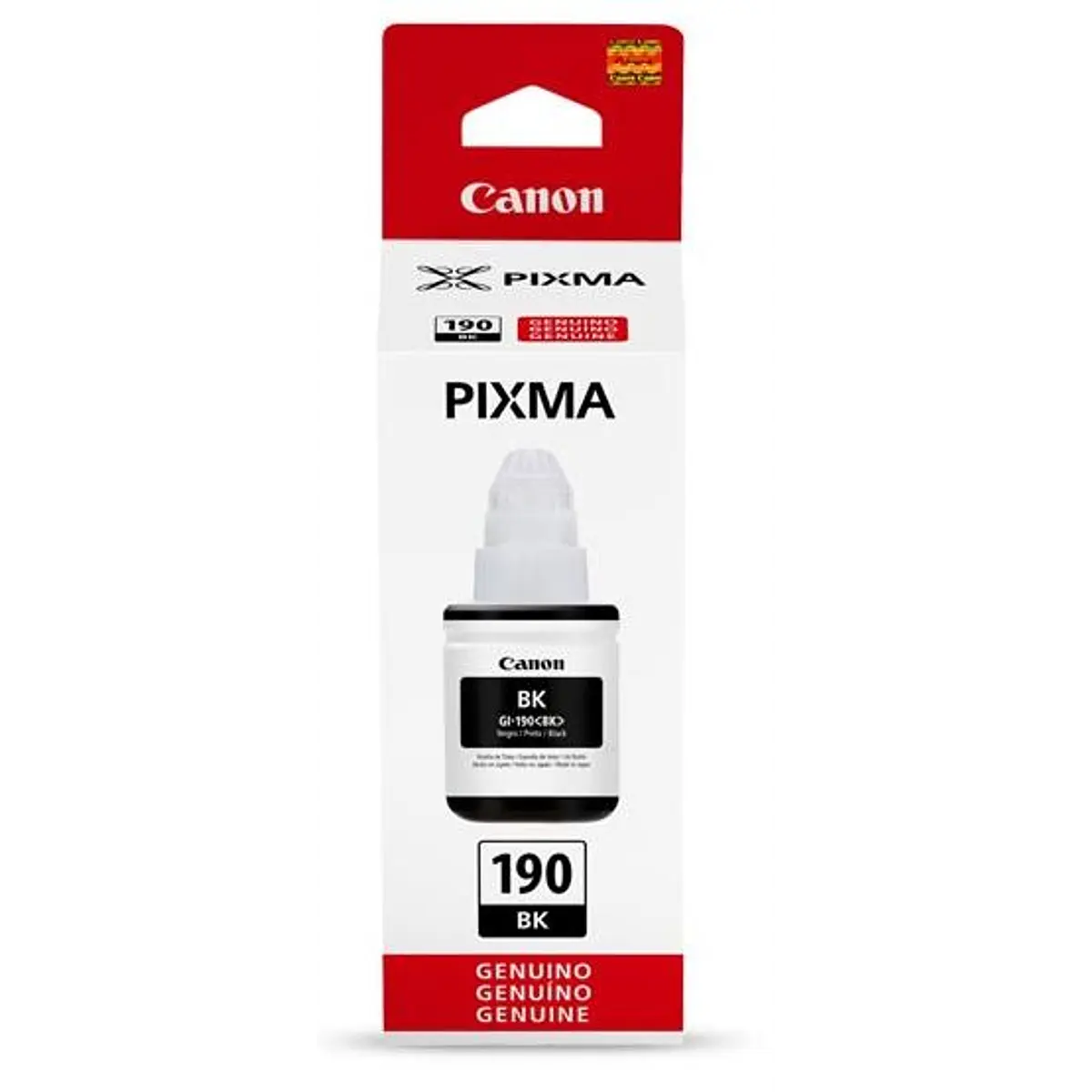 Los cartuchos de Tinta Canon (190) Negro de código GI-190BK de Capacidad standard, cuentan con altos estándares de calidad de impresión y al mejor precio del mercado, recuerda que una botella que se encuentra en venta de Tinta Canon original cuentan con un Holograma original fabricada especialmente para reconocer la originalidad del producto y pueda realizar la mejor calidad de impresión con suministros originales.